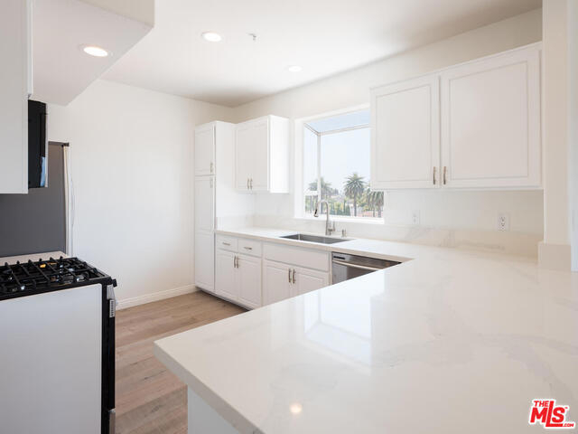 Perfectly located in the desirable Mar Vista neighborhood, this remodeled top floor corner unit features white gallery walls, beautiful new engineered hardwood floors throughout with new plush carpet in the bedrooms. The Master Bedroom features a huge walk-in closet, the guest bedroom also has amazing closet space & BOTH have their own ensuite bathrooms. The kitchen features a charming garden window, white cabinets, a large peninsula, quartz counter tops & brand new stainless steel appliances. Enjoy the tall ceilings measuring over 8 ft. & a gas fire place in the living room for those chilly evenings. From your private balcony take in the mountain views & sunsets or read a book and enjoy a glass of wine as you feel the ocean breeze. Furthermore enjoy the tranquil pool & relax by the spa on those lazy summer days! The property is in walking distance to the Farmer's Market, restaurants & shops with Culver City and Santa Monica night life minutes away. Don't let this condo pass you by!