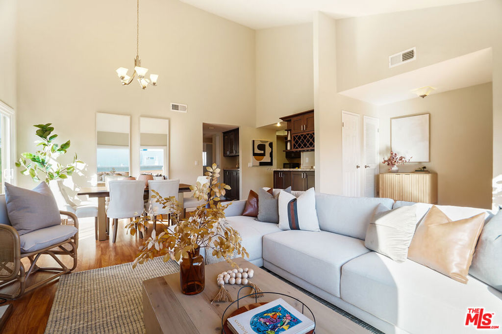 Welcome to this must-see high ceiling sun soaked condo! Nestled on a quiet street in Mar Vista, this spacious home offers the perfect blend of comfort and convenience with 18 foot ceilings in the living area and primary bedroom. As you step inside, you'll be greeted by an inviting open living room flooded with natural light creating a light airy feel. The huge living room and dining room is perfect for a quick brunch for two or a dinner party for ten. The remodeled kitchen is a chef's delight with plenty of counter space and room to lay out a feast on the corner bar. Step into the primary bedroom, with high beam windows floor to ceiling and light-filled from sunrise to sunset. Inside the primary bathroom continue the vaulted ceilings and a blank canvas for a future modern touch. The second bedroom is spacious with plenty of closet space. Down the short hallway, is the 2nd bathroom and the washer and dryer are easily accessible. This unit also comes with tandem two-car parking in the gated garage. This quaint eight-unit, low-HOA building makes a great place to live and work on the westside without high costs. This home has a central HVAC and has been updated with a newer washer and dryer, stainless steel appliances, and a bar perfect for mixing drinks or a wine celar attached to the kitchen. Situated on the borders of Culver City and Mar Vista, you'll have easy access to Lodge Bread, Alibi Room, Red Diamond Yoga, Orange Theory and the Mar Vista Farmer's Market. Plus, with the beach, parks, and major freeways nearby, you can experience the best of Southern California living. Don't miss this opportunity to make 11918 Avon Way your new home sweet home.