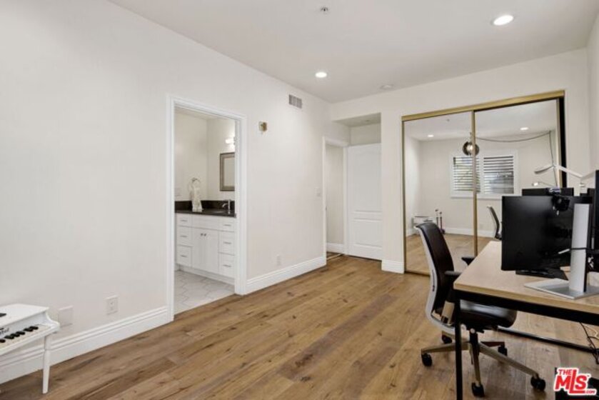 Welcome home to a Contemporary Mediterranean townhome with a sunlit private terrace in one of Brentwood's most desirable pockets. Behind double mahogany doors, a generous great room with fireplace flows through French doors to a lush garden terrace - seamless indoor/outdoor living at its best. A stylish wet bar with built-in wine cellar and mirrored backsplash makes hosting feel effortless. The updated kitchen is both crisp and practical, featuring stainless steel appliances, quartz countertops, under-cabinet lighting, abundant storage, and a walk-in pantry. Upstairs, the home's bedroom level is quiet and refined, highlighted by a peaceful primary suite with walk-in closet and a spa-inspired bath with soaking tub, plus two additional bedrooms - one with a walk-in closet - connected by a Jack-and-Jill bathroom for flexible living. Wide-plank floors, recessed lighting, in-unit laundry, and gated parking complete the package. Moments away, enjoy a flat walk to San Vicente's cafes, dining, fitness studios, and the Sunday Brentwood Farmers' Market, with easy access to Brentwood Village, Barrington Rec Center, and nearby parks. Located within highly regarded LAUSD 90049 school options. HOA covers building maintenance, building insurance, water, and common-area electricity. Offer Deadline: January 27th at 5:00 PM.