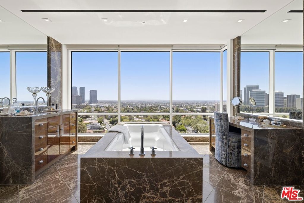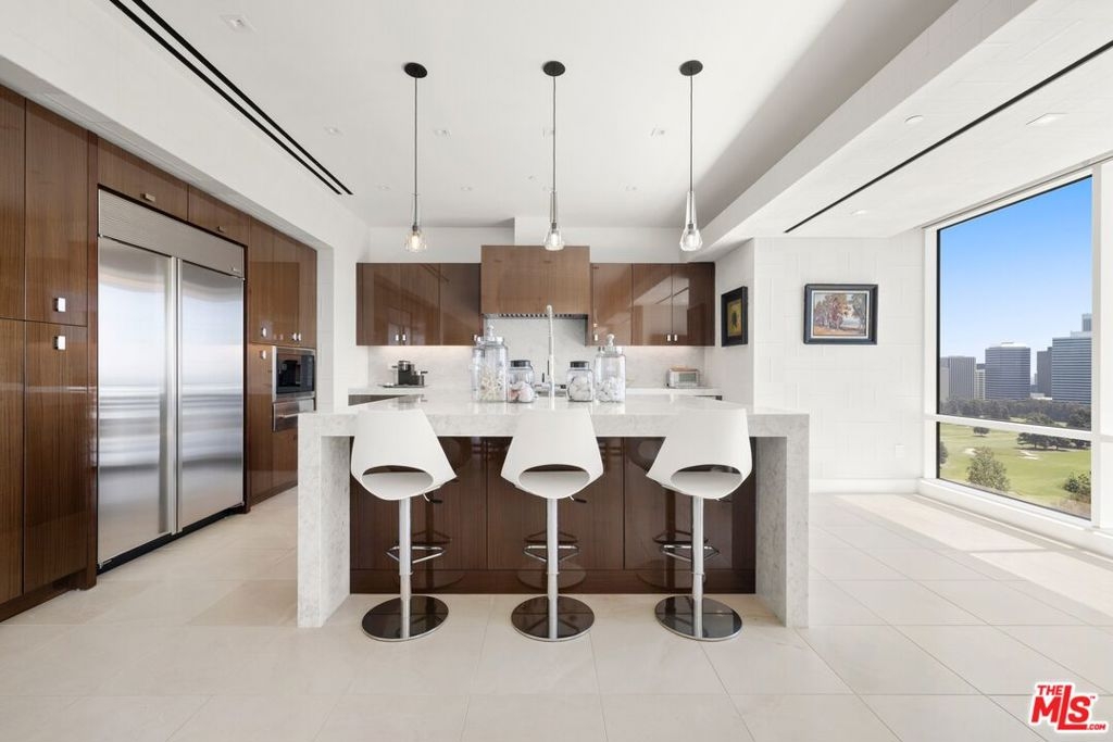 Located in one of Los Angeles's most prestigious buildings, Residence 14 South at Beverly West has been recently renovated and exudes sophistication. This 5-star service building, adorned with world-class amenities, offers unparalleled service, ensuring an elevated and luxurious experience for its residents. Enter the unit through dedicated elevator access with a private vestibule into an open-concept layout bathed in natural light and framed by expansive floor-to-ceiling windows. Spanning over 4,100 sq ft, this 3-bedroom, 3.5-bathroom residence features a meticulously crafted layout enhanced by two outdoor terraces and premium finishes, creating a seamless fusion of style and comfort. The open-concept kitchen, dining, and living areas provide an ideal setting for entertaining, anchored by an oversized kitchen island that serves as both a functional workspace and inviting gathering point. The primary bedroom offers one of the residence's two exclusive terraces with stunning views of Century City and the Bel Air Country Club golf course, along with dual spa-inspired ensuites and an oversized walk-in closet. The additional bedroom continues the home's refined sophistication with its own ensuite and abundant natural light, completing this thoughtfully designed and elegant residence.