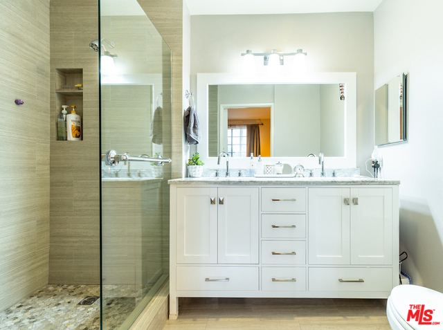 Welcome home to this beautiful townhouse-style condo fully renovated in 2018. The chef's kitchen with KitchenAid and Bosch stainless steel appliances, custom cabinets and quartz countertops overlooks the dining area with bar, perfect for entertaining. The spacious living room features a custom tile fireplace and balcony with tree-top views. Upstairs you find two bedroom suites with gorgeous renovated full bathrooms. The huge master walk-in closet has plenty of room to display and store all your clothes and shoes. Recent upgrades include new heating and AC system, NEST thermostat, wood flooring throughout, LED recessed lights, new water heater and much more. Enjoy in-unit laundry with washer/dryer as well as plenty of storage. Located in a small, secure, well-kept building with courtyard, the condo comes with 2 tandem parking spaces and storage near the elevator. Easy walking distance to Mar Vista's Farmer's Market, local eateries and shops as well as the upcoming Culver Market.