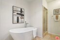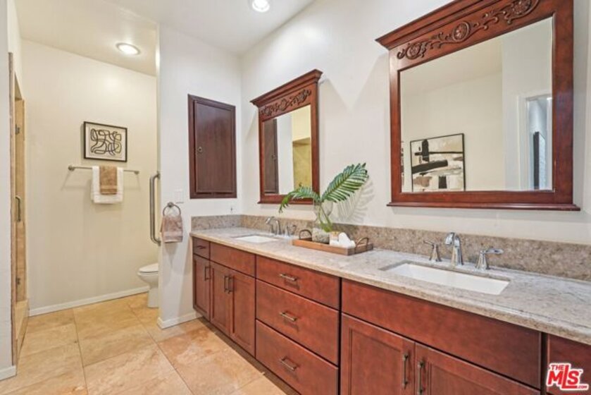 Nestled between Santa Monica and Brentwood, this West LA condo is among the largest 2-bed, 2-bath units currently for sale -- OFFERED AT THE LOWEST PRICE PER SQUARE FOOT ON THE MARKET. Exit the private elevator into a grand double-door entry framed by marble tile flooring, leading into a spacious, single-level interior filled with natural light. The open living room offers hardwood floors, a modern granite gas fireplace, and access to a large tiled balcony with a private storage closet. The formal dining area is perfect for entertaining, featuring a striking light fixture and a built-in wet bar. The updated kitchen is outfitted with granite countertops, a tray ceiling with recessed lighting, ample cabinetry, and stainless steel appliances. Both bedrooms are generously sized and naturally bright. The primary suite includes a fully renovated bathroom with double vanities, travertine tile, a walk-in shower, and a brand-new freestanding soaking tub. Additional features include just one shared wall, an in-unit stackable washer, upgraded HVAC, electrical, and plumbing systems, two secured tandem parking spots with storage, and controlled access to both the building and elevator. Ideally situated near popular local hotspots with top-tier walkability and seamless access to the 405 and 10 freeways, this location offers the perfect balance of lifestyle and convenience.