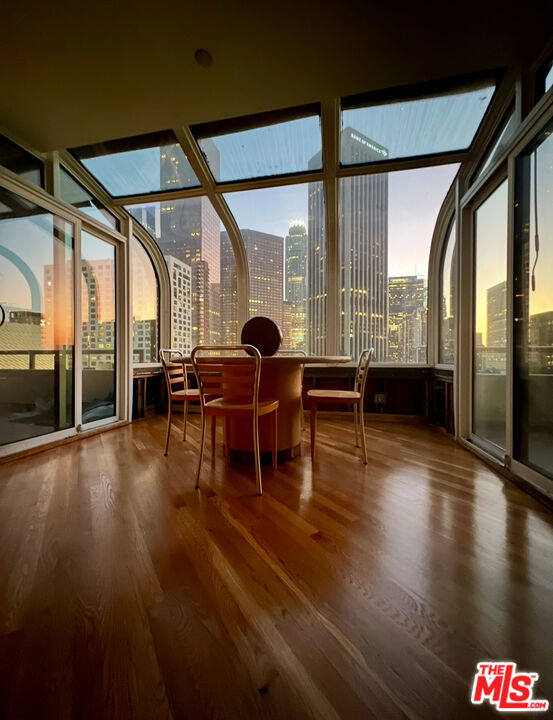 Magical VIEWS of the City and City Lights in the evening, this home is ALL ABOUT the VIEW! Discover this quintessential Los Angeles lift style condo: perched atop The Promenade East building: DTLA's premier address in the prestigious Bunker Hill area: conveniently located directly across from the Walt Disney concert hall, The music center, The Broad, Grand Park, Grand central market, The Grand and Conrad Hotel, Metro station at Grand Ave/Bunker Hill. The moment you open the door, you will immediately be struck by the spectacular VIEWS, hall way lead to nice size of kitchen, open floor plan, spacious living room and dining room is looking out DTLA VIEWS from lots of windows, balconies, spacious primary bedroom with en-suite large bathroom, walk in shower. The 2nd bedroom current use as an office/den, 2nd bathroom also have shower and bath-tub. Lots of built-ins, The Promenade East offers a Full-Service living experience with tons of amenities including 24-hour concierge and security, a lap pool, spa, sauna, fitness center, on-site management, lush outdoor lawn with outdoor picnic, 2 separate parking spaces, a sweet home with iconic VIEWS in urban life style