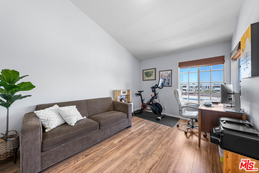 Spacious, beautifully updated 3 bed, 2-1/2 bath in the heart of charming Mar Vista--waiting to greet you with its abundant beams of natural light. An inviting floor plan rests beneath soaring, top floor vaulted ceilings - filled to the brim with sunlight. Enjoy the open concept upstairs with updated laminate flooring, upgraded kitchen and appliances, main living room with decorative fireplace, bedroom (currently used as den/office), and sliding doors that open onto a private patio with panoramic city and sunset views. Downstairs features two spacious, updated bedrooms, both with en-suite bathrooms redone in 2020. This unit also features many inclusive gems such as central heat/AC, water filtration system, in-unit laundry, community rooftop deck with 360 degree views of the city, secure and quiet building, two parking spots, and plenty of storage. Steps to weekly Mar Vista Farmers Market, award winning Alana's Coffee, Little Fatty's and many other eateries. 2 miles to Venice Beach, 12 minutes to LAX, and convenient to Downtown LA. Please do not disturb occupants.