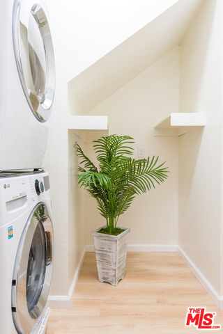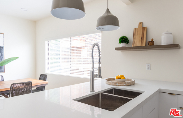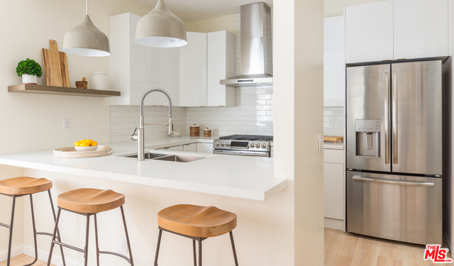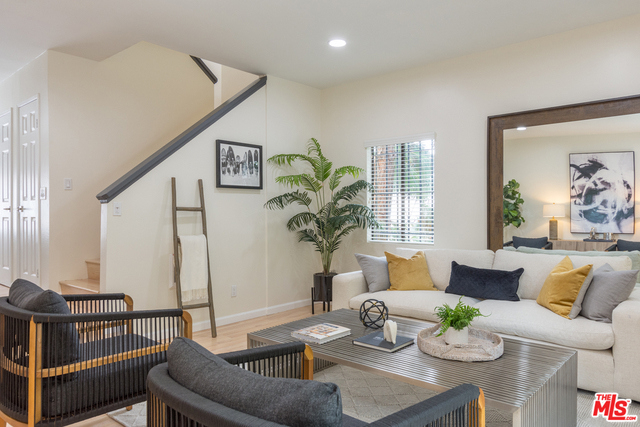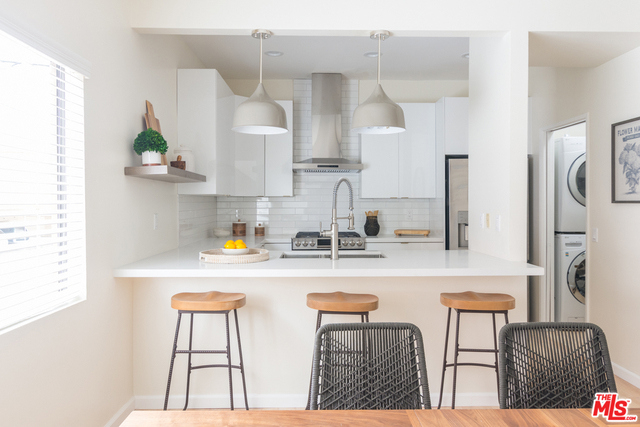 Scandinavian meets Mid Century in this beautifully renovated designer's unit. Spectacular townhouse style corner unit is tucked away in the highly sought after pocket of Mar Vista. Main level features a step down living room w/glass framed fireplace & opens to oversized patio perfect for entertaining or dinning al fresco. Redesigned chef's kitchen offers new stainless steel appliances, quartz counters, pull out cabinetry, center island w/breakfast bar & walk-in pantry w/a stackable washer/dryer. Enjoy the vaulted ceilings on the second level & master suite offers a grand floating bathtub & magnificent walk in closet. All bathrooms have been upgraded w/designer finishes including Italian glass, subway tiles, soaking tubs, new vanities & fixtures. Also featuring engineered white oak hardwood floors, recessed lighting, large storage room, ample closet space, natural and warm tones all around w/textured finishes to showcase modern design accents throughout.