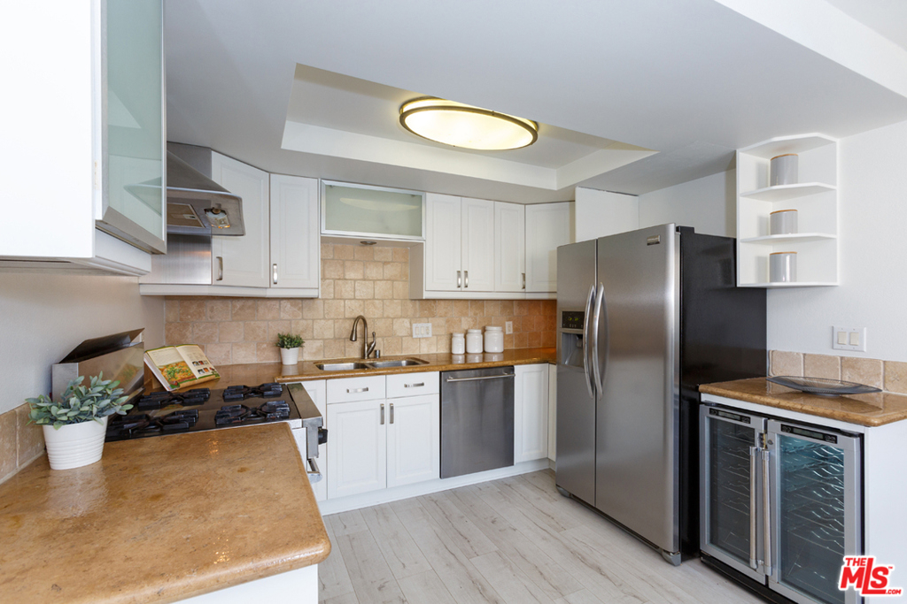 Great Mar Vista location with a tremendous walk score. Nicely renovated with new floors, lighting, central AC/heating. Stunning kitchen with stainless steel appliances, Viking gas range, travertine tile backsplash, marble countertops and a wine fridge. The kitchen flows seamlessly to the dining room, balcony and open concept living room with fireplace. The bedrooms are well-placed and the updated bathroom has beautiful travertine tile, marble counters and a spa tub. Laundry hookups in unit. Two car parking. Close to shopping, restaurants, entertainment, farmers market, the marina, beach and Abbott Kinney.
