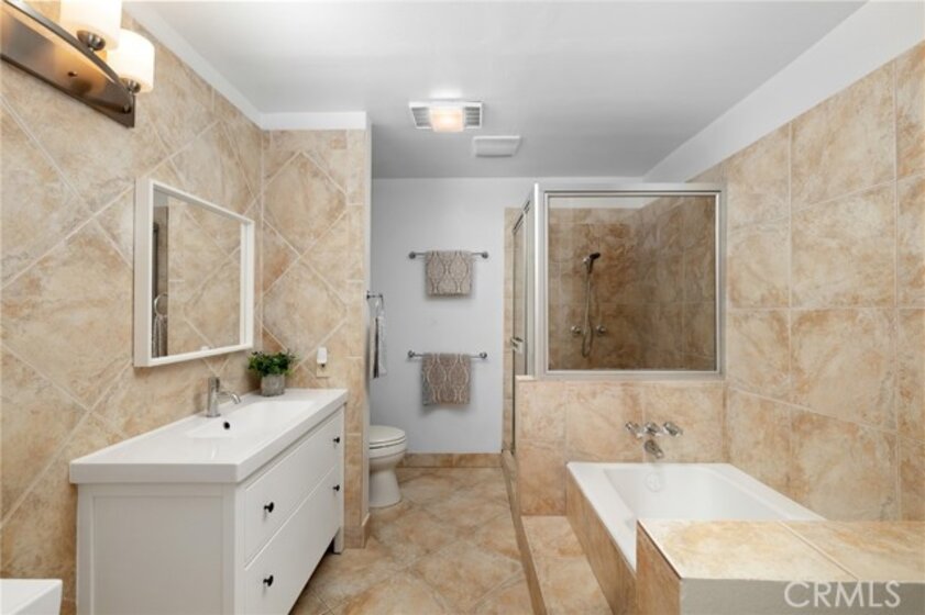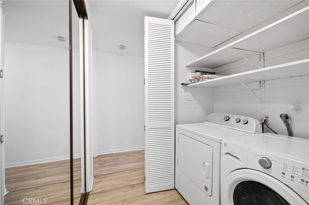 This updated 2-bed, 2-bath single-level condo is conveniently located in a prime West Los Angeles location adjacent to Brentwood. Enter into the controlled-access building's lobby and you are just steps away from the double-door entry to this ground-floor unit. Enter into the spacious unit and you are immediately greeted by attractive laminate floors. Beyond the entry is the large living room with recessed lighting and cozy fireplace. Adjacent to the living room is the dining area which connects to the updated kitchen with newer countertops & appliances. At the end of the kitchen is a breakfast nook with pantry area. Both the living room & dining area have sliding doors, which open to the covered balconies. Down the main hallway is the laundry closet with additional storage. This turnkey unit has 2 large bedrooms, including the expansive primary suite with attached full bathroom. The primary bathroom has dual vanities/sinks and a separate tub & shower. The second bathroom is located off the hallway and services both guests and the 2nd bedroom and has a shower/tub combo. Other features of the attractive unit include central air & heat. This unit comes with 2 assigned parking spaces in close proximity to the unit (1 with EV charging), as well as an additional storage closet. HOA amenities include a clubhouse/recreation room, gym, and an indoor pool & spa. This property provides the ideal combination of a convenient location & low-maintenance living.