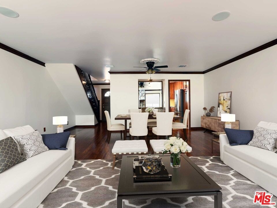 Nestled in the serene pockets of Mar Vista, this approx. 1,319 sq. ft. townhome is a perfect haven for westside living. This rare offering is one of six private, gated townhomes and comes to market for the first time in 35 years. On the main level you will find large open living spaces including a formal living room with a stone wood burning fireplace, formal dining area, built-in bar with sink, and kitchen with top-tier stainless steel appliances. The second level includes 2 large primary bedrooms both offering ensuite bathrooms, natural light, and ample closet space for clothes and storage. A side by side laundry room is conveniently located in the hallway.Upgrades include, newer stainless steel kitchen appliances, side by side laundry, wood floors, stone countertops, bathtub, tankless water heater, and new garage door opener. Parking is a luxury with a secure gated garage offering two tandem spots, providing space for four vehicles, complemented by private storage cabinets. Its prime location ensures you're never far from the attractions of Venice Beach, Marina Del Rey, Santa Monica, Sunday Farmers market, be it a short drive or a refreshing bike ride. Elevate your LA lifestyle in this Mar Vista gem. **OFFERS DUE SUNDAY 08/20 by 5:00 PM**UNIT BEING SHOWING AUG 16th &18th FROM 4:00PM- 6:00PM/EMAIL FOR ENTRY**