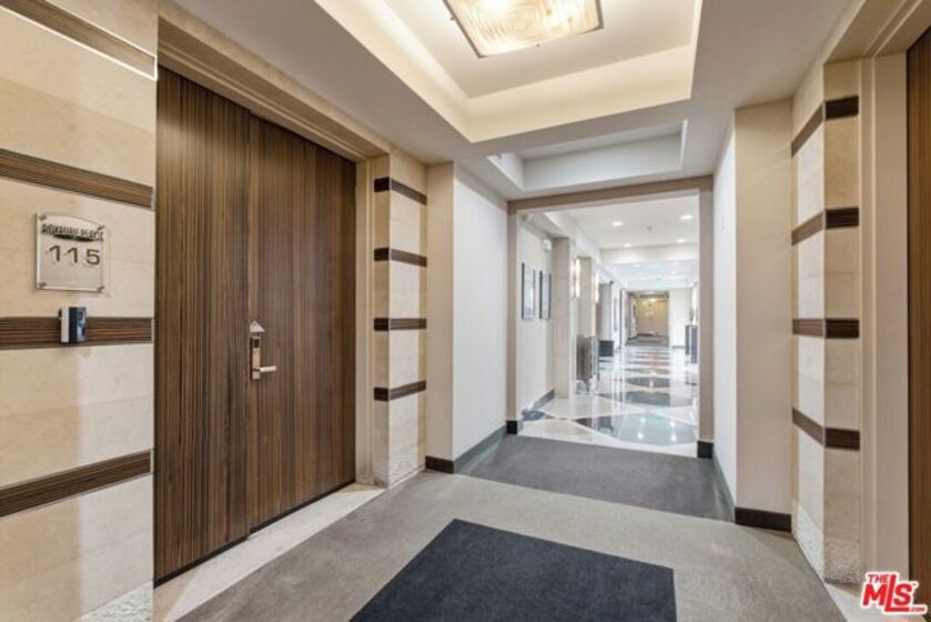 Welcome to your modern 2BR/2.5BA condo located in the Art Deco-inspired Roxbury Place building just steps from Beverly Hills. This spacious 1,991 sq. ft. west-facing first-floor residence features excellent natural light, nine-foot ceilings, and designer finishes throughout. Interior features include dark hardwood floors, recessed lighting, and an open-concept living and dining area that leads to a private tree-lined balcony. The kitchen offers granite countertops, bar seating, and ample cabinet space. The two primary bedroom suites are situated on opposite sides of the living area for privacy, and each includes a spacious en-suite bathroom with dual vanities. The larger primary bathroom features a soaking tub and separate shower. Additional features include a gallery-inspired entry hall, powder room, large storage closet, and in-unit laundry. Building's luxury amenities include concierge service, fitness center, and outdoor lounge area. HOA dues include earthquake insurance. Conveniently located approximately one mile from Roxbury Park and just minutes from the shopping, dining, and entertainment along Rodeo Drive, South Beverly Drive, and the business district of Century City.