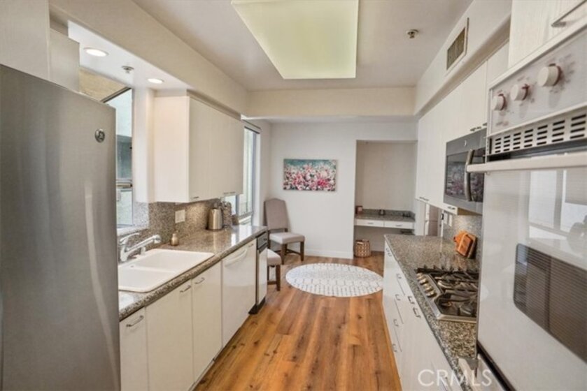 Welcome to this bright, front-facing corner condominium offering exceptional comfort and style, with only two units per floor and a thoughtfully designed open floor plan filled with recessed lighting and abundant natural light. The expansive living and dining areas are ideal for entertaining and flow seamlessly into the open kitchen, complete with a breakfast area and bar. Tasteful upgrades include motorized Hunter Douglas sheer window coverings, adding both sophistication and ease. The home features a convenient powder room, in-unit laundry with generous storage, and balconies on both ends of the unit. The primary suite is a true retreat, showcasing soaring ceilings, a cozy fireplace, two adjoining walk-in closets, and a spa-inspired bathroom with dual vanities, a separate tub and shower, and a relaxing jacuzzi. The secondary bedroom offers an ensuite full bath, ensuring comfort and privacy. Ideally situated within walking distance to Westfield Century City Mall and popular lifestyle shops, and just minutes from Beverly Hills, this residence delivers unparalleled convenience in one of the area’s most desirable neighborhoods.