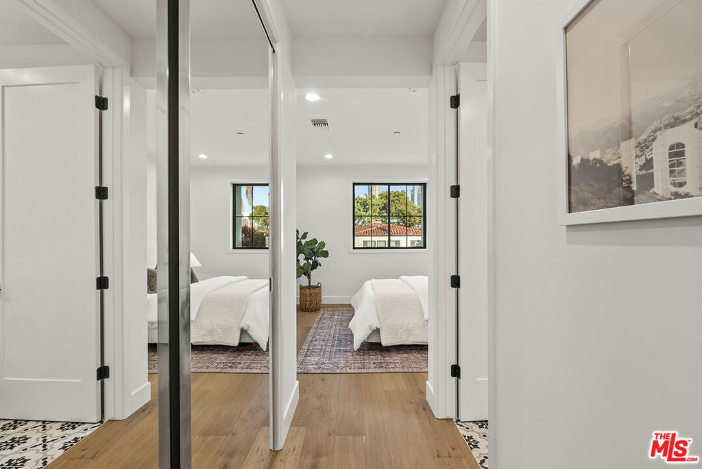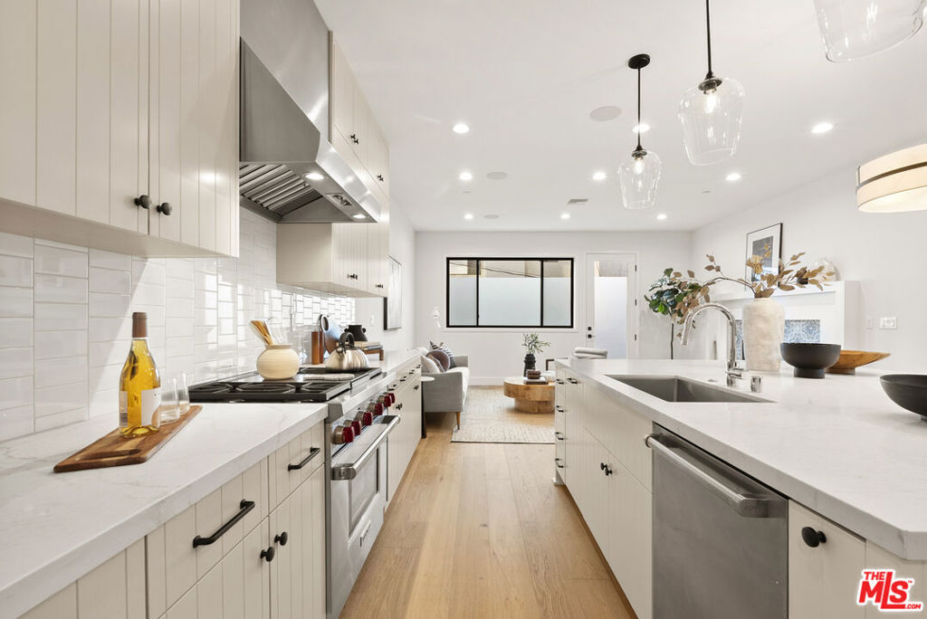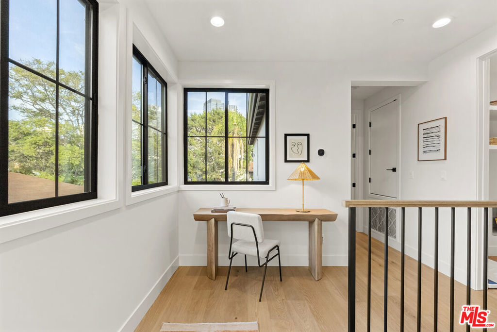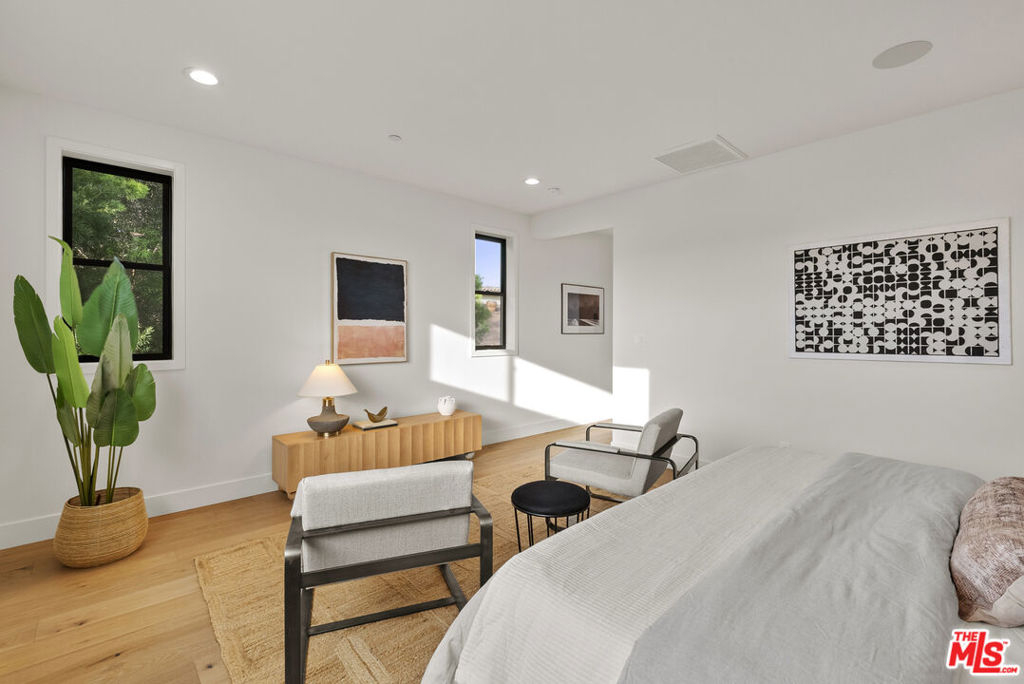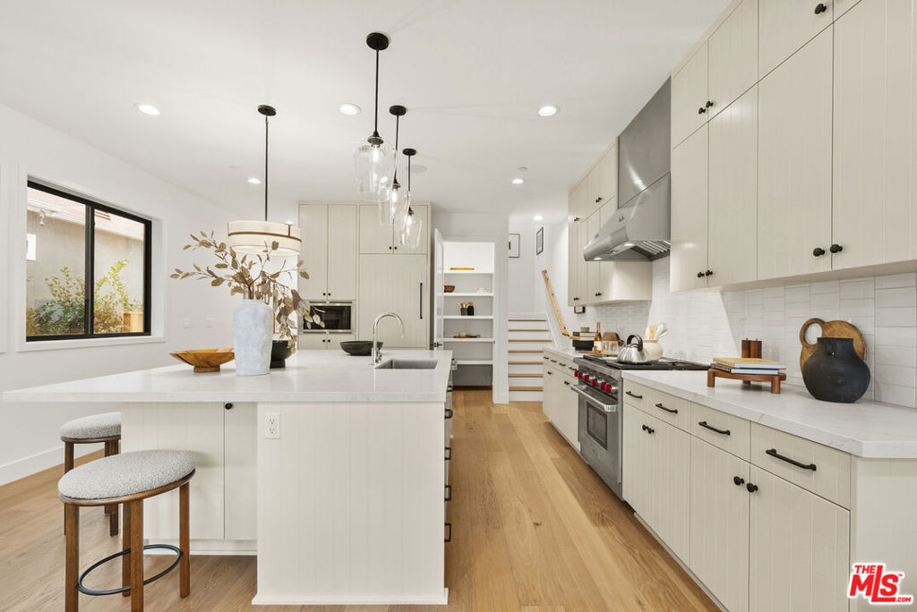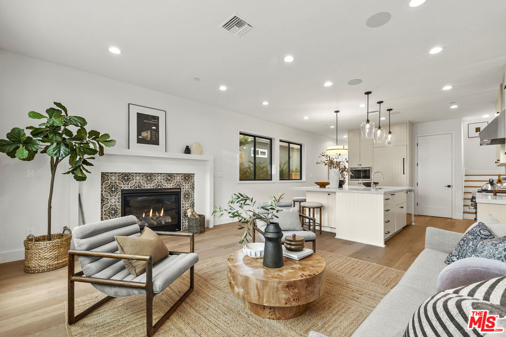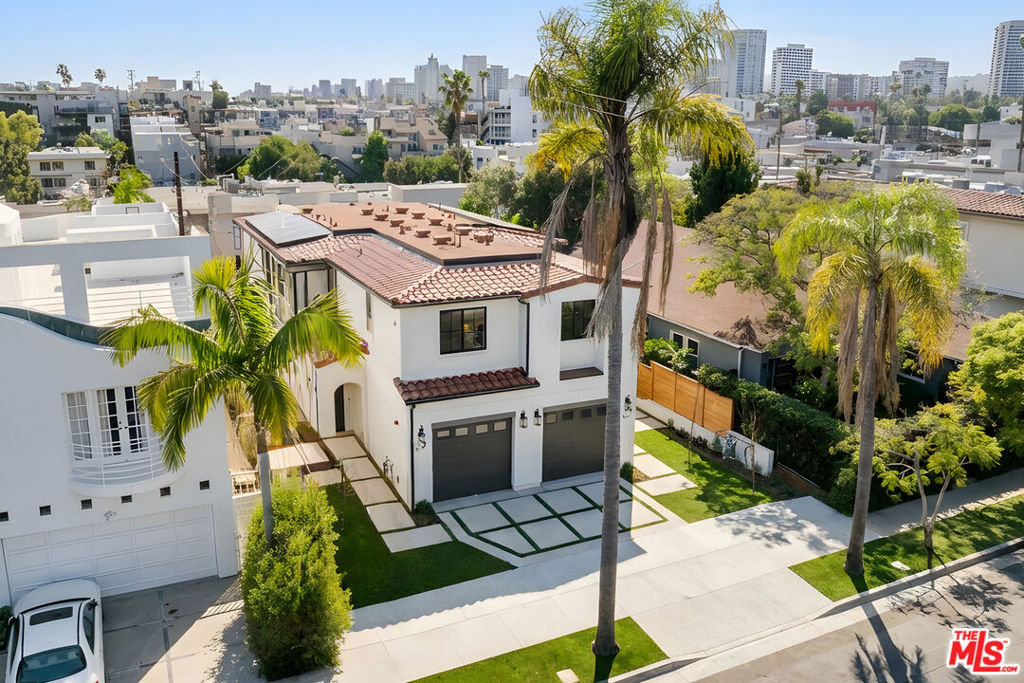 Welcome to Villa Benecia, Spanish for "the blessed one." This stunning, brand-new 2026 Thomas James Homes (a national leader in high-quality residences) modern Spanish-style townhouse condominiums built with quality craftsmanship, never lived in, features an elevator, attached garage, and an exceptional location in the highly sought-after Century Glen neighborhood. Ideally located just west of Westfield Century City and east of Beverly Glen, the home is blocks to fine dining, shopping, fitness centers, and more. Positioned on a hilltop, the residence offers beautiful views of the Century City skyline. Enter from the attached garage or through the formal covered front door into a dramatic entry hallway with high ceilings and warm hardwood floors. The main level features an open-concept dream kitchen with Wolf and Sub Zero appliances, a large center island seating up to six, a spacious living room with gas fireplace, and a generous balcony overlooking the private yard below. This level also includes a powder room and elevator access to all three floors. The top floor offers a luxurious primary suite and a guest bedroom, both with en-suite bathrooms, along with a laundry room and a flexible landing area ideal for a desk or seating nook with Century City views. The primary suite boasts abundant natural light, views of the Wilshire Corridor skyline, a walk-in closet, and a spa-like bathroom with expansive vanities, a large shower, and a freestanding soaking tub. The guest bedroom features ample closet space, a well-appointed en-suite bath, and stunning skyline views. The lower level, adjacent to the private backyard, provides an expansive open space ideal for a second guest suite, screening room, or entertainment area, complete with an en-suite bathroom. Rare offering with New Solar Panels on Roof. One of only two units available.