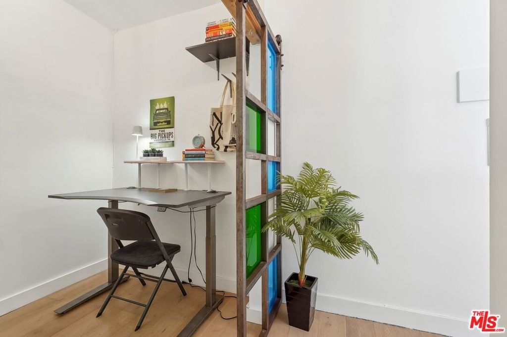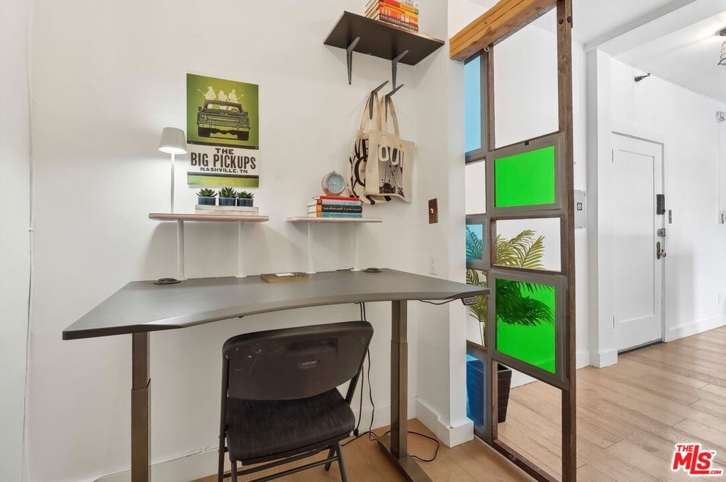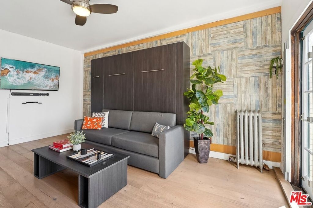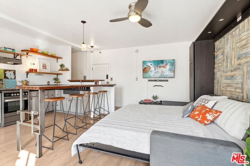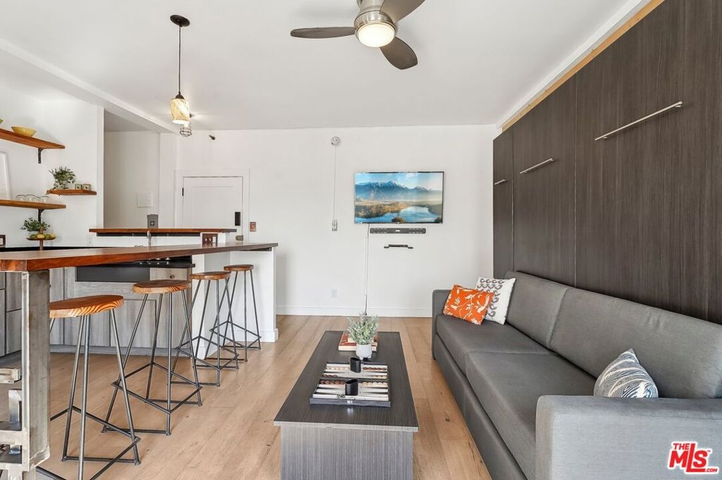 Here is your opportunity to own a part of Los Angeles history! This turnkey, top floor, courtyard facing, light and bright studio condo is ready and waiting for you. Situated in the stunning architectural Glen Donald building near downtown LA, all the city has to offer is just outside your doorstep. The control-access front gate opens up to a lush courtyard reminiscent of old Hollywood glamour. Once inside you will be welcomed into a charmingly classic lobby, with free wifi access for tenants. Next, head downstairs to the community room- complete with a ping pong and a pool table, and ample room for all to gather. There are also two laundry rooms, a fitness room, two changing rooms, and secure bike storage on this level. Getting up to the unit is a just quick elevator ride, or you can take one of many grand staircases to ascend to the fourth floor. Walking down the hall you will enjoy views of the mountains, the city and the iconic Hollywood Sign. The security of a Schlage keyless entry pad to your unit makes coming and going simple. Opening the front door you will be wowed by the sunlight flowing from the courtyard through three french door style windows. A handmade custom wooden top bar and stools create a perfect dining area facing the well equipped kitchen in this open floor plan. The stylish couch transforms into a Murphy bed which is perfectly suited to create a cozy sleeping area when entertaining is done. Additionally you will find an office nook, with a standing desk, and an artistic industrial style sliding door to create a separate spot to do your work. And there is still room to house a dresser and hang your clothes! The charm of the vintage bathroom tub and shower will offer a relaxing place to recharge at the end of your day. The HOA fees cover electric, gas, water, trash. While there is no parking offered on site, there are multiple paid private lots nearby. Close proximity to the Metro at the Westlake/MacArthur Metro station grants you access to all this area has to offer!