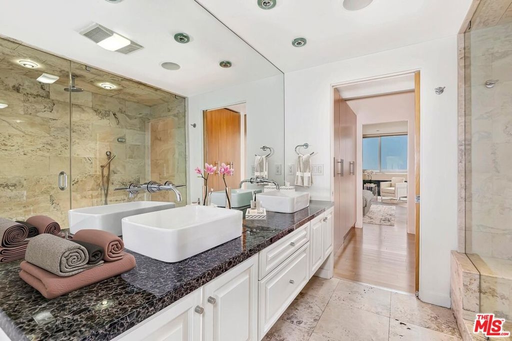 Stunning corner unit with unobstructed Views of the Golf course to the Pacific Ocean. Chic & sophisticated open floor plan, recessed lighting, and sound system. Entertainers kitchen with stainless appliances, wine cooler, granite countertops opening to the dining area and living room with balcony. Primary suite with view, ample closet, steam shower & double sinks & balcony. Second bedroom with city & golf course view. 24 hr full service guard gated complex. First-class amenities include a doorman, valet parking, concierge service, outdoor swimming pool, sauna, tennis courts and a well equipped gym & guest parking. Inside laundry & central heat & AC. The building charges a move-in and move-out fee. 48-hour notice is required for all showings. The unit is also available for lease at $7,950 per month. The photos have been virtually staged.
