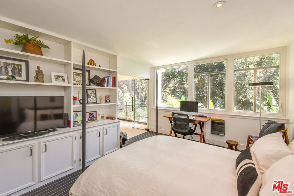 Beautifully remodeled and spacious 1-bedroom retreat with serene tree-top views set quietly in one of Brentwood's most sought-after enclaves. Floor-to-ceiling windows create a dramatic living space with incredible natural light, while multiple sitting areas offer flexibility for lounging, working, or entertaining. The thoughtfully designed layout includes both a dedicated dining area and a breakfast bar, seamlessly connecting to a chef's galley kitchen with abundant storage. The home has undergone extensive renovations, including all-new windows, a fully redesigned bathroom, refinished wood flooring, and new carpet making it truly move-in ready. The bathroom is elegantly appointed with a freestanding soaking tub and separate shower, creating a refined, spa-inspired feel without sacrificing function. The oversized bedroom features a wall of windows, custom built-ins, and an expansive walk-in closet. Storage is plentiful throughout the home. Located in a gated community with secured assigned parking, residents enjoy resort-style amenities including two pools and a spa with poolside bathrooms, a large park, and a fenced dog park. Ideally located just moments from Brentwood Village with local favorites such as Clark Street Bakery, and the iconic Brentwood Country Mart. Offered with the option to be delivered furnished.