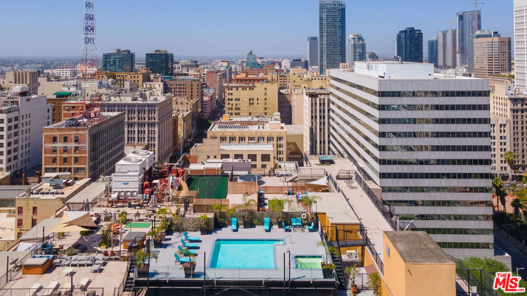 DTLA killer investment or a perfect primary! A turnkey, fully furnished property with short-term & long-term rental opportunities. Centrally located ShyBary Lofts unit. You will love the building's stunning architecture, rooftop pool, and hot tub with stunning city and mountain views. There is also a fitness center, BBQ area, and 24-hour security. The urban sanctuary comes fully furnished. The 1-bedroom loft features an airy, industrial-chic design with high beam ceilings. The spacious bedroom offers ample storage, while the modern kitchen boasts natural light, ample cabinets, generous counter space, and a dishwasher. Enjoy the sundrenched living area with ceiling-to-floor original windows. The unit has the convenience of an in-unit washer and dryer. Located next to Pershing Square, just a block from Grand Central Market and the metro, this loft offers unbeatable access to LA's best dining, shopping, and entertainment in the Arts District. Don't miss this prime opportunity to own a stylish, move-in-ready loft in the heart of Downtown LA! This building is short-term rental approved and Airbnb-ready. Get ready for the 2028 Olympics with this investment opportunity.