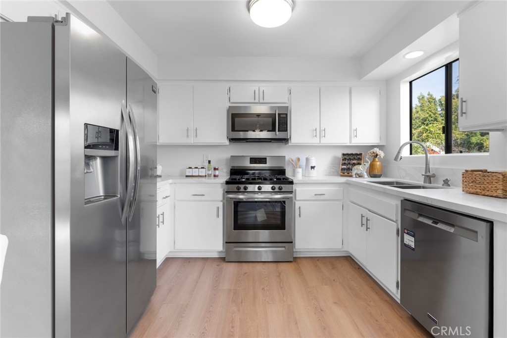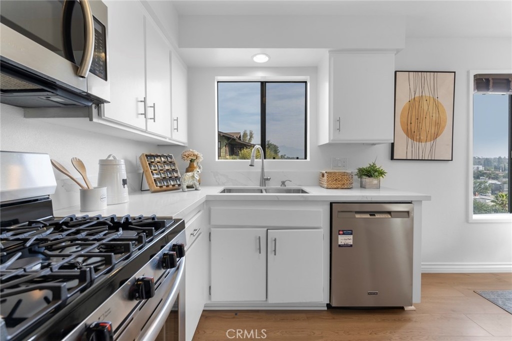 Welcome to the highly desirable area of Highland Park! This newly remodeled 2-bedroom, 2-bathroom condo spanning 1077 sqft showcases an open floor plan and modern interior, making it an ideal sanctuary. Nestled in the quiet back of the complex, privacy is paramount, while breathtaking views greet you from every window. Perfect for hosting gatherings, the spacious living room features hardwood vinyl flooring and a cozy fireplace tucked in the corner, complemented by sliding glass doors opening to a private, enclosed balcony. The master bedroom offers a generous walk-in closet, and the home is accompanied by recessed LED lighting throughout. The functional kitchen showcases brand-new appliances and countertops, ensuring both style and practicality. With the convenience of an in-unit washer and dryer, plus a two-car tandem garage with ample storage space, all your needs are met. Located in the Garvanza District of Highland Park, this home is minutes away from the South Pasadena border and within close proximity to local shops, restaurants, and coffee spots on York Blvd. Explore the vibrant Farmer's Market on Figueroa St., Conveniently situated near the Metro Gold Line for easy access to city adventures. Come see your new home.