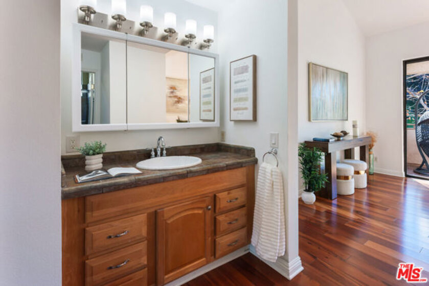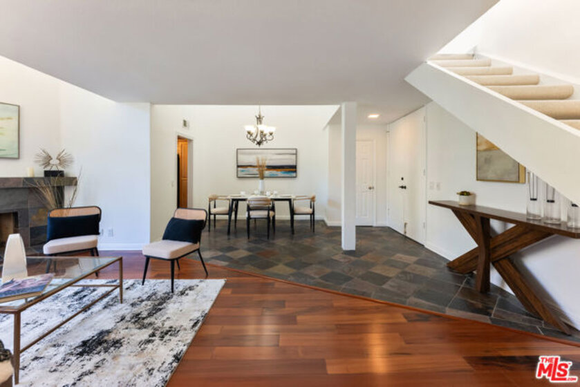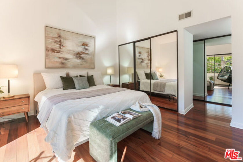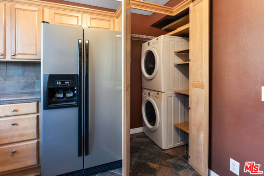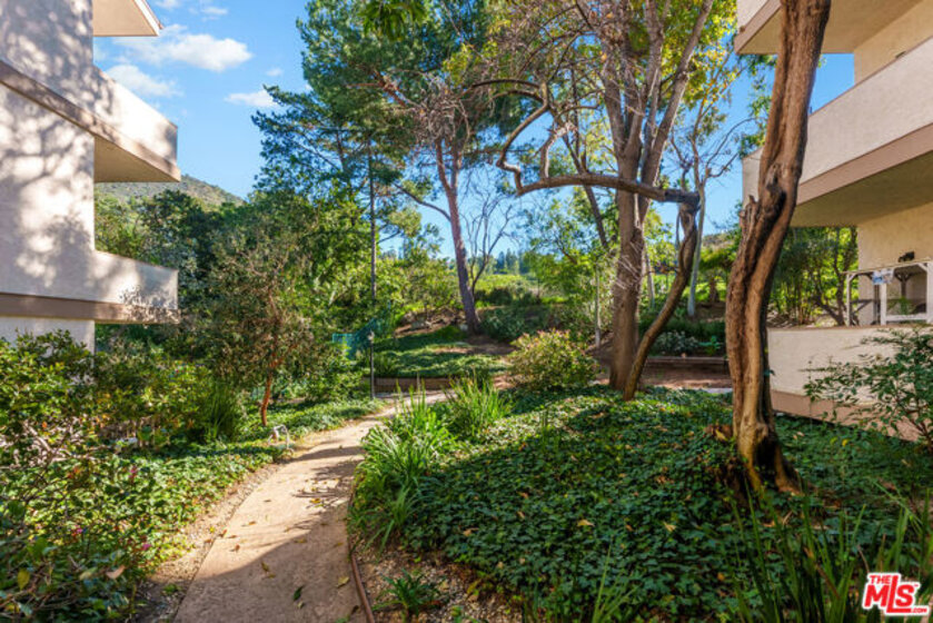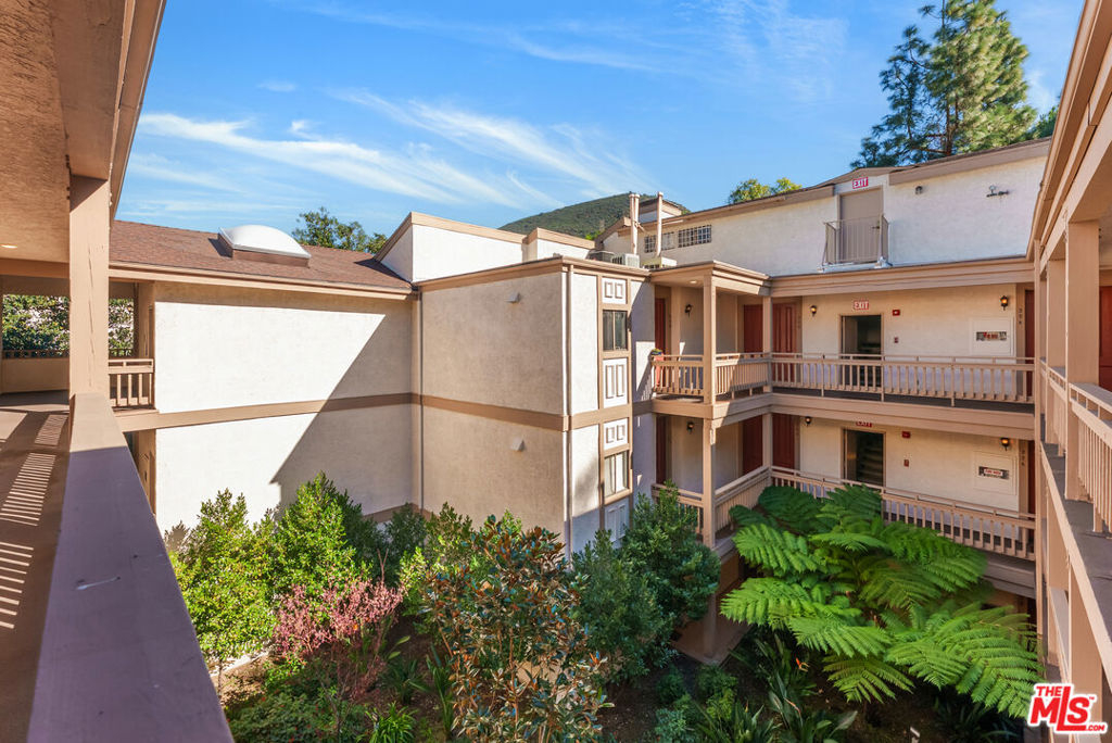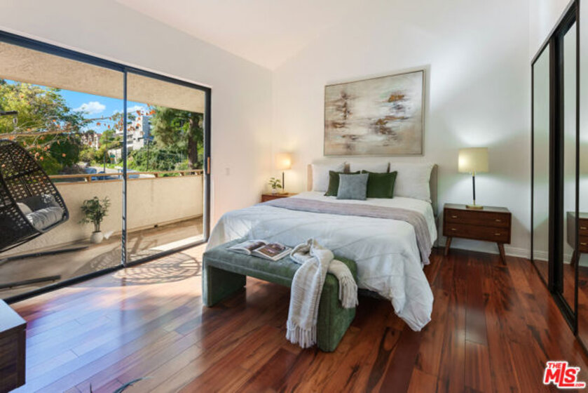 Step out your front door and immerse yourself in vibrant urban living with effortless access to Hollywood, major studios including Netflix, Universal, Warner Bros, and Disney, premier dining, and shopping. Step out your back door and wander through lush, tropical, park-like grounds to a private gate with direct access to the Wisdom Tree hiking trail, Hollywood Reservoir, and the iconic Hollywood Sign. Life at 3480 Barham offers a rare blend of city energy and natural serenity. Perfectly positioned for a true Los Angeles lifestyle, this beautifully remodeled end-unit penthouse offers 2 bedrooms and 2 bathrooms, plus a generous loft ideal for a home office, den, or potential third bedroom. Vaulted ceilings and an abundance of windows create an airy, expansive feel, flooding the home with coveted western-exposure natural light. The updated kitchen is both functional and inviting, featuring ample counter space, abundant cabinetry, and a large pantry that conveniently houses a stackable washer/dryer -an exceptional perk not found in all units. Hardwood floors and slate tile flow throughout the home, adding warmth and sophistication. The spacious living room, anchored by a gas fireplace, opens to a private balcony, seamlessly connecting indoor and outdoor living, as well as a separate dining area. Down the hall, both bedrooms feature vaulted ceilings and tranquil green outlooks. The primary suite offers generous closet space, a separate vanity area, a full bathroom, and its own private balcony with peaceful treetop views. Upstairs, the loft feels like a private retreat, complete with a large walk-in closet and endless flexibility for work or relaxation. Community amenities include beautifully landscaped grounds with private walking paths, a swimming pool, spa, and BBQ area. Two side-by-side parking spaces near the elevator, along with additional storage cabinets in the gated garage, complete this exceptional penthouse condominium. A rare opportunity to enjoy elevated living where urban convenience meets natural beauty.