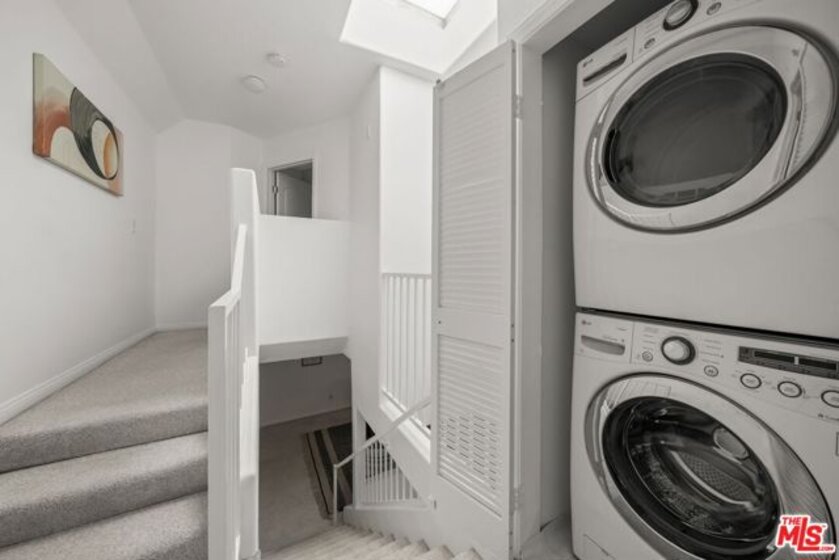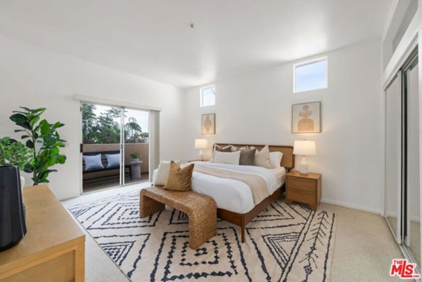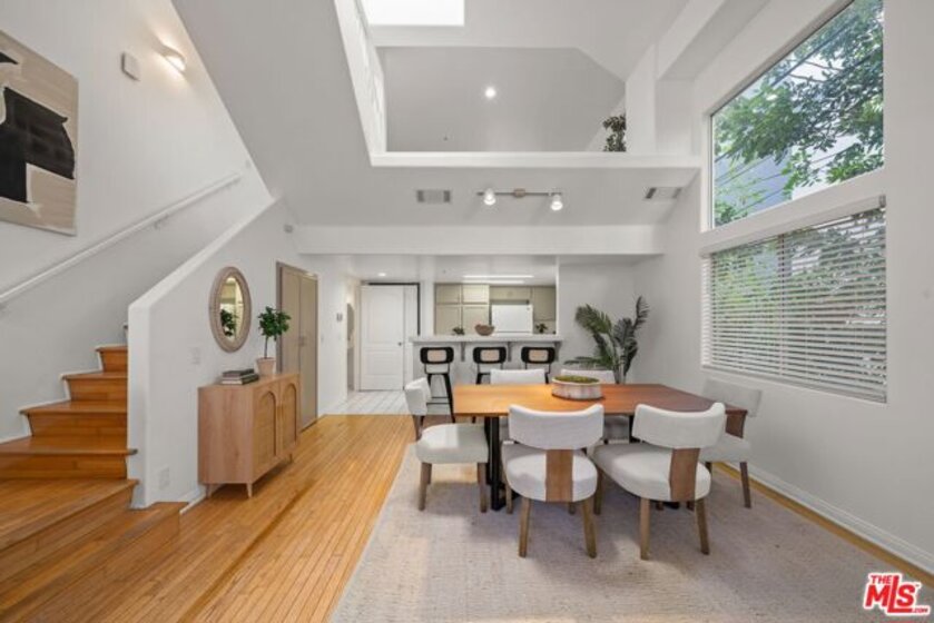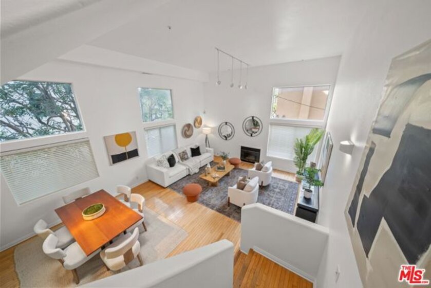 Discover modern living in this premier 2 bedroom, 2.5 bath tri-level townhome with loft, offering 1,457 square feet of light-filled space in an intimate 10-unit building. Designed for comfort and style, the dramatic living and dining area features soaring 16-ft ceilings, expansive windows, hardwood floors, and a cozy fireplace. A spacious loft overlooks the open floor plan, providing opportunity for an office, den or flex space. Privately situated in the quiet back corner of the building, this home shares only one wall and opens to a serene backyard setting. A large central skylight, along with an additional skylight in the second bathroom, fills the home with natural light throughout the day. The generous primary suite features a private balcony with peaceful west-facing views. Additional highlights include an in-unit alarm system, inside laundry with LG washer and dryer, and secure gated access to both the exterior corridor and underground parking featuring two side-by-side spaces plus guest parking. Thoughtful upgrades include a brand-new HVAC system, water heater, Honeywell smart thermostat, range with exhaust hood, dishwasher, and garbage disposal. Low HOA dues of just $350/month. Ideally located on a quiet, tree-lined street within walking distance of vibrant downtown Culver City, this move-in-ready home offers the perfect blend of convenience, comfort, and contemporary design.