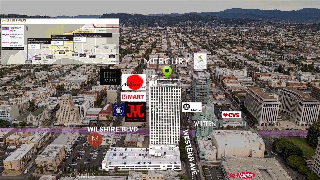 IDEALLY located "LIVE / WORK" condo!! See the last image for details. Welcome to REFINED HIGH-RISE LIVING AT THE MERCURY (formerly the Getty Building commissioned by J. Paul Getty and designed by renowned architect Claud Beelman), ONE OF KOREATOWN’S MOST ICONIC RESIDENTIAL TOWERS ALONG THE WILSHIRE CORRIDOR. Ideally situated at the PROMINENT CORNER OF WILSHIRE AND WESTERN, the building is directly across from the historic Art Deco landmark, THE WILTERN THEATRE AND PELLISSIER BUILDING. This elegant SOUTH-FACING 1-BEDROOM, 1-BATHROOM RESIDENCE offers a bright, open-concept layout with UNOBSTRUCTED CITY VIEWS. Inspired by NEW YORK–STYLE LOFT LIVING, the home features ENGINEERED HARDWOOD FLOORING with dark wire-brushed textures, rich color variation, and multi-stained finishes, complemented by soft gray-toned walls for a WARM YET MODERN AESTHETIC. LARGE WINDOWS flood the space with natural light, creating an inviting setting for both EVERYDAY LIVING AND ENTERTAINING. The modern kitchen is equipped with RECENTLY UPGRADED STAINLESS STEEL APPLIANCES and flows seamlessly into the living area. Additional features include an IN-UNIT WASHER AND DRYER, a spacious bathroom, and ample storage. Residents enjoy RESORT-STYLE ROOFTOP AMENITIES ON THE SKY DECK, including a pool, jacuzzi, fitness center, and outdoor lounges with PANORAMIC LOS ANGELES VIEWS, along with 24/7 SECURITY, PACKAGE MANAGEMENT, AND SECURED PARKING. A RESERVED PARKING SPACE is included, conveniently located near the elevator lobby for EFFORTLESS AND DIRECT ACCESS. Located in the HEART OF KOREATOWN / MID-WILSHIRE, the residence is surrounded by renowned dining, shopping, entertainment, and transit options, with EASY ACCESS TO DOWNTOWN LA, HOLLYWOOD, AND MAJOR FREEWAYS. With upcoming global events such as the 2026 FIFA WORLD CUP and LA 2028 OLYMPICS, as well as the planned PURPLE LINE SUBWAY EXTENSION, this home presents a RARE OPPORTUNITY FOR ELEVATED URBAN LIVING AT THE MERCURY—WHERE LOCATION, LIFESTYLE, AND SOPHISTICATION CONVERGE.