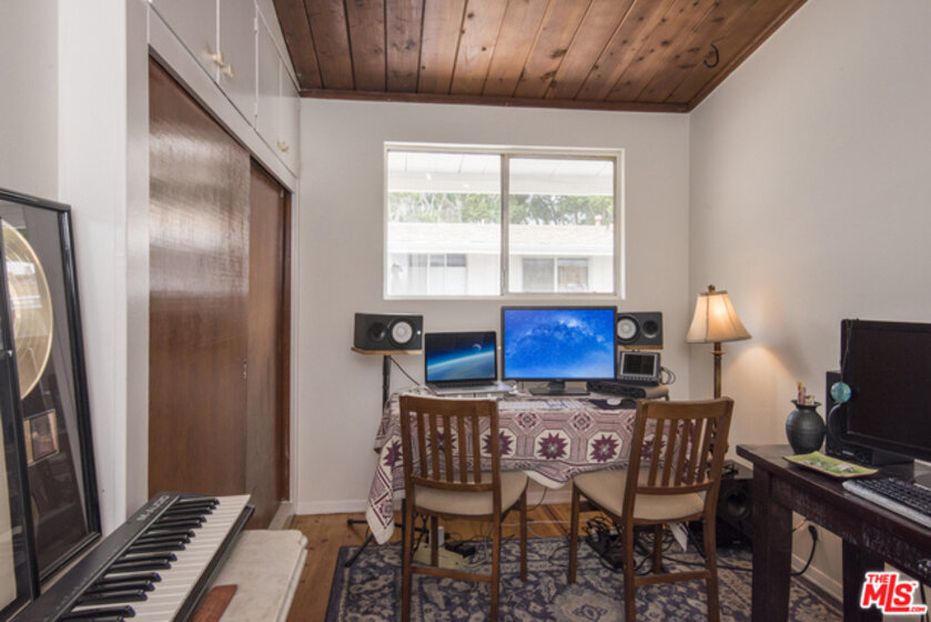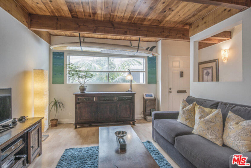 Come check out this bungalow style Townhome in highly sought after Mar Vista just a few miles from the beach. Has the privacy of being an inner facing unit w/ 2 bedrooms 1.25 bath, beautiful pine wood ceilings & beams throughout gives the entire unit a bungalow feel, kitchen leads to a private patio perfect for al fresco dining, both bedrooms are located on 2nd floor and have generous closet space, full size remodeled bathroom w/kohler shower faucets upstairs, convenient second bath located on main level, washer/dryer are energy rated and come with the unit, 2 parking spaces (1) in a private shared garage and (1) in gated outside area...resort like community includes landscape, pool, spa, and open space perfect for private parties.