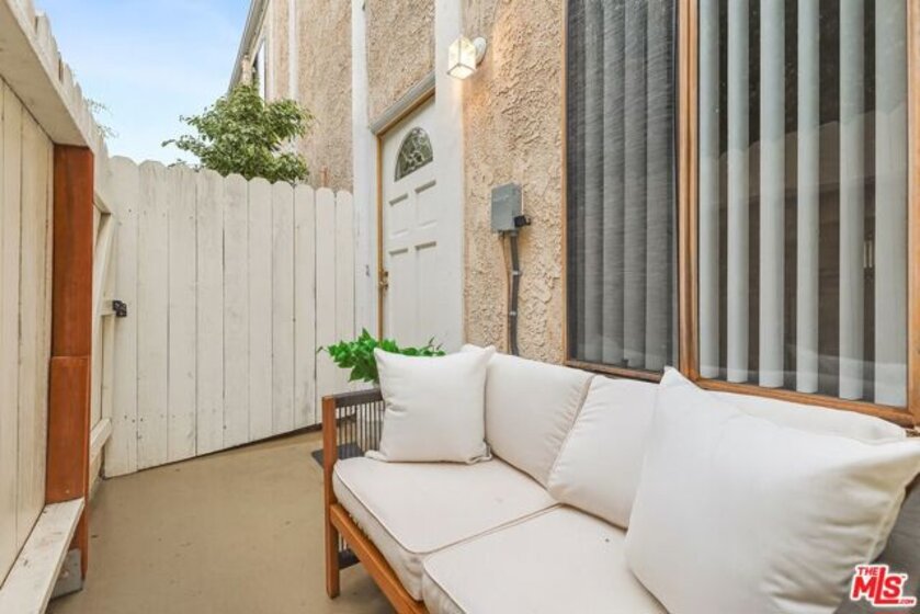 Welcome to this lovely, renovated two-bedroom, two-bathroom townhome filled with charm, natural light, and stylish upgrades throughout. Upon entering, you're greeted by a private front patio perfect for your morning coffee or evening relaxation. The house features a wonderful free-flowing and open-concept layout where the dining and living room are anchored by a cozy tiled fireplace. Upstairs, the primary bedroom offers an en-suite bathroom, while the second bedroom enjoys its own nearby hall bath. Both bedrooms benefit from high ceilings, further elevating the sense of light and openness, and ample closets with shelving. Thoughtful finishes continue throughout the home, with updated bathrooms featuring new vanities and storage, and new vinyl flooring in the kitchen and baths. Additional highlights include two designated parking spaces equipped with extra enclosed storage ideal for bikes and gear. The secure and gated complex has completed earthquake retrofitting, foundation restoration, and new planters with delicate trees. Ideally located, you'll enjoy easy access to the Ballona Creek bike path, beaches, dining, and everything the Westside has to offer!