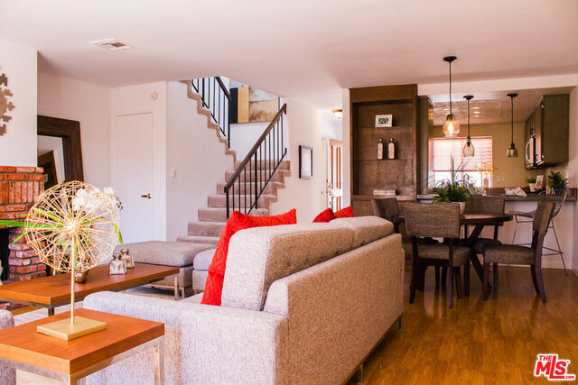 Beautifully updated townhome-style condo on a quiet cul-de-sac in a fantastic location. Enter to an open-concept floorplan with a private patio and bonus storage space off of an oversized living area. Kitchen with breakfast bar and custom-built cement counter-top with built-in butcher block contains newer high-end stainless steel appliances replaced in 2016. Half-bath on the main floor is convenient for guests and also contains in-unit washer and drier also replaced in 2016. Stairs lead up to two spacious bedrooms, each with its own walk-in closet and en-suite bathroom. The master suite also contains a standing closet for even more storage space. Technology upgrades include an ecobee smart thermostat and Schlage keyless touchpad. AC system was also replaced in 2016. Tandem parking spots are conveniently located close to the unit in a subterranean community garage, and community amenities include a pool, spa, and community storage.