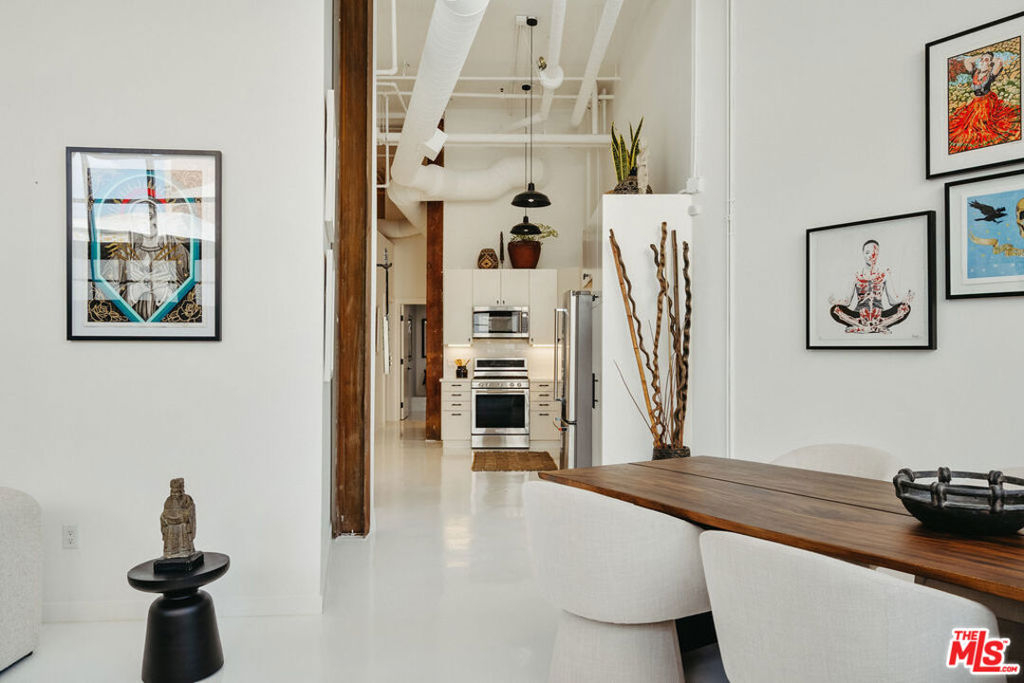 A rare opportunity to own a truly distinctive live/work loft in the heart of the Arts District a residence where creativity, comfort, and thoughtful design converge. Originally renovated by a renowned film and television composer, this exceptional home features a fully operational, professionally built soundproof recording studio, ideal for music, film, or post-production work. Every detail was executed with precision and no expense spared, creating a space that is both highly functional and deeply inspiring.Beyond the studio, the loft offers a warm and livable layout anchored by a spacious primary bedroom suite with built-in upper storage and the flexibility to convert into a second studio if desired. A custom-designed galley kitchen blends form and function with quality finishes, making everyday living and entertaining effortless.Additional highlights include 15.5-foot ceilings, original brick, classic post-and-beam construction, custom soundproofed steel entry doors and windows, power shades, and newly refinished white epoxy floors that create a sleek, gallery-like atmosphere. A private street-level entrance with dedicated parking adds rare convenience and privacy.Located within the iconic Molino Street Lofts, a landmark 1920s warehouse conversion completed in 2006 and home to 91 residences, owners enjoy two rooftop decks with sweeping city, building, and street views, a pool and BBQ area, and a fitness center.Immersed in the creative energy of the Arts District, the location is just steps from Hauser & Wirth, Manuela, Bavel, Verve Coffee, ROW DTLA, Soho House, Damian, Bestia, Girl & the Goat, Urth Caff, and more. The neighborhood is also home to innovative companies including Honey, BMG Music, Spotify, Soylent, Lucky Brand Jeans, and 3sixteen, along with local mural tours, green spaces, and the Arts District Dog Park. This is a rare chance to own a true creative sanctuary equal parts professional studio, refined urban home, and architectural statement.