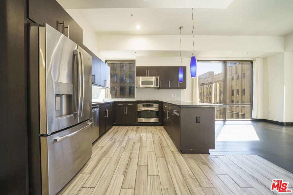 LOCATION!! The Hope Street Lofts in Downtown L.A. offers a spacious and stylish living experience. Located in the heart of downtown, it's just a stone's throw away from shopping centers, restaurants, and entertainment venues. The Crypto.com Arena (formerly the Staples Center) is only a few blocks away, making it an ideal place for sports fans. The semi-open floor plan is polished to perfection, creating a seamless flow between the living room, dining area, and kitchen. The condo offers stunning city views from the south and west-facing floor-to-ceiling windows and walls, adding to its appeal. There are two full bathrooms, each with a soaking tub. The kitchen is equipped with stainless steel fridge and dishwasher, and an oversized breakfast bar. A washer and dryer are also included in the unit. The building amenities include 24/7 security, a front desk concierge, a rooftop with panoramic Downtown views, a helicopter pad, a sundeck, barbecue grills, and a chic wet bar. The rooftop has recently been redone for entertainment with amazing views. For lifestyle convenience, the condo also features a game room and a gym with brand new equipments. Additionally, there's a large storage room in the basement exclusive to this unit. One unassigned parking space is available onsite. Located directly above the 7th Street Metro Station, the Hope Street Lofts offers the best of urban living at your doorstep. It's conveniently situated near all the action at Crypto Arena or LA Live, making it an ideal choice for those who want to experience the heart of downtown L.A.