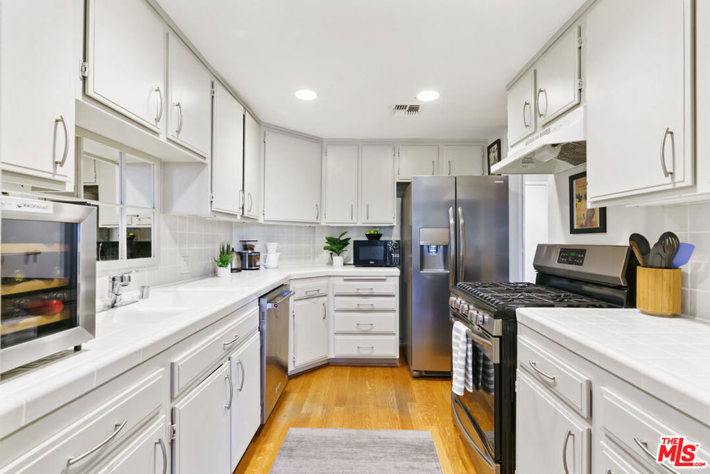 Don't miss out on this spacious condo located in the heart of Los Angeles, 1 block away from Melrose Place! Complete with an oversized primary suite with a walk-in closet, en-suite, and balcony access. This condo features 1 bedroom, 2 bathrooms, laundry in-unit, a private balcony, and a fireplace. The balcony provides an abundance of natural light and there is beautiful wood flooring throughout. This complex boasts a sunny outdoor pool, recreation room, and two saunas with bathrooms adjacent to the pool area. Two parking spaces are assigned to the unit and there is also ample guest parking. A great value in the heart of the city and close to shopping dining and transportation. Accepting backup offers.