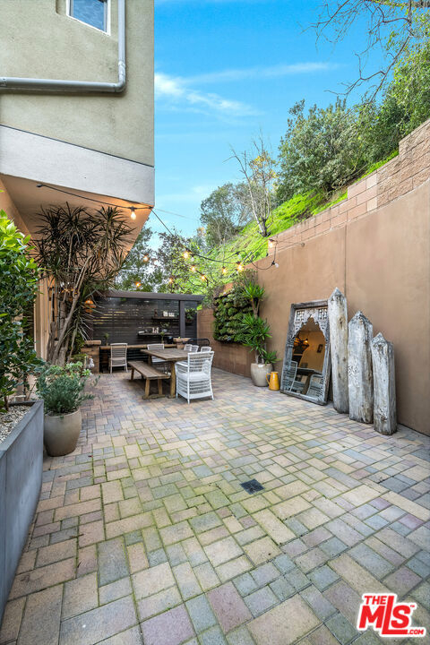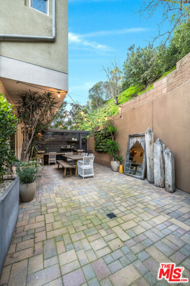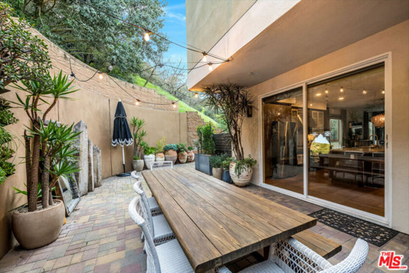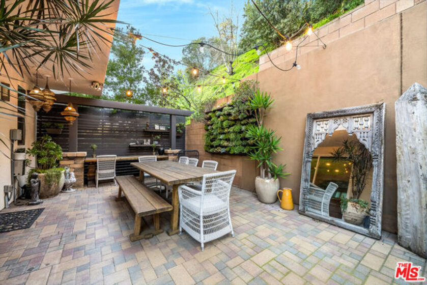 Incredible value for the most desirable and highly coveted unit in the complex! Located on upper Gill Way - in the most quiet and peaceful section of the community, this corner unit features maximum privacy with no neighbor on the Western side. Encapsulated by lush greenery and nature, enjoy extra large patio space only afforded to the corner unit which includes the private side entrance for even more outdoor space and beautiful outdoor dining. Abundant natural light pours in through energy-efficient L-E windows, accentuating a modern and tasteful color scheme throughout. The open-concept kitchen is outfitted with sleek custom cabinetry, durable Caesarstone countertops, and the full accompaniment of stainless steel, energy-saving appliances. Spa-inspired bathrooms showcase imported vanities, luxurious surfaces, elegant Moen fixtures, and water-saving features. Built with sustainability in mind, this home includes programmable thermostat, high-efficiency lighting, tankless water heater, insulated air ducts, and prewiring for 210V hybrid vehicle charging. Ideally and conveniently located with easy access to the Hollywood Bowl, Runyon Canyon, Universal Studios, and the vibrant heart of downtown LA. A true must see property at an exceptional value!!