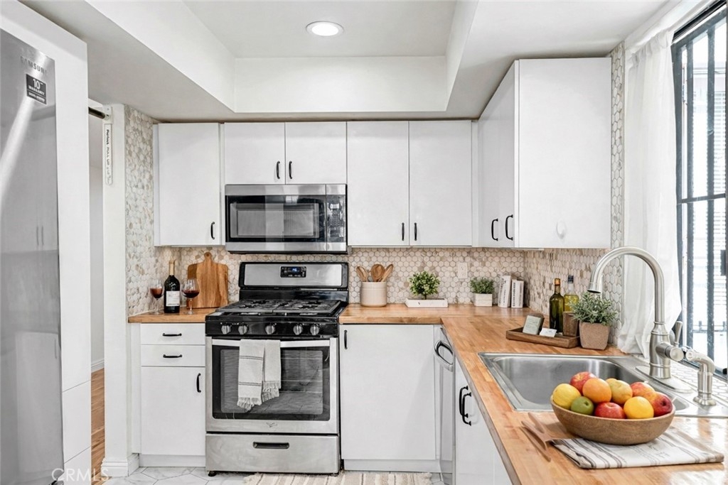 Recently renovated (2020), this beautifully updated ground-floor corner 2-bedroom, 2-bath condo offers approximately 1,000 sq ft of living space, plus a generous balcony overlooking lush greenery including a natural-gas Weber grill (no propane required). This desirable corner unit shares only one wall (above), providing enhanced privacy and reduced noise from neighbors. Inside, you’ll find a thoughtfully designed dual primary suite layout, each with its own ensuite bath. One bath features a Kohler Jacuzzi tub, while the other offers a spacious walk-in shower designed for two. The bright white kitchen is outfitted with butcher block countertops, newer appliances, a dishwasher, and ample cabinetry, all complemented by recessed lighting throughout. Additional highlights include in-unit laundry and modern finishes that create a clean, inviting feel. A rare bonus, the home is equipped with a private approximately 8’ x 10’ storage room which is located directly next to the unit, offering exceptional convenience and flexibility. The home also includes two large tandem parking spaces in the community garage with additional guest parking right outside the garage. New AC unit was installed in 2022 Residents enjoy access to a community pool, jacuzzi, and shared gathering space, while water and trash are included in the HOA. This move-in-ready home combines comfort, functionality, and privacy in a well-maintained community. An exceptional opportunity you won’t want to miss.