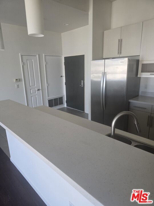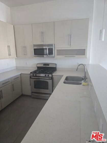 Experience the best of Los Angeles living from the top floor of a highly desirable condo in the heart of Koreatown. This corner unit offers an impressive combination of style, light and location--a rare opportunity in one of LA's most vibrant neighborhoods. This is a highly desirable northwest end unit on the top floor. This unit enjoys abundant natural light from multiple windows, along with sweeping views of the surrounding city. The living area features a fireplace nestled in the corner, and high ceilings, for a spacious and warm feel. Step outside onto your private patio and take in the view of Los Angeles all around you. The kitchen features sleek and modern European-style cabinetry ---designed for both beauty and function. The primary bedroom includes a walk-in closet, and the thoughtful floor plan makes excellent use of every square foot. This unit comes with two separate ( non-tandem) parking spaces and a private storage unit for added convenience. In this condo you will enjoy modern city living at its finest.