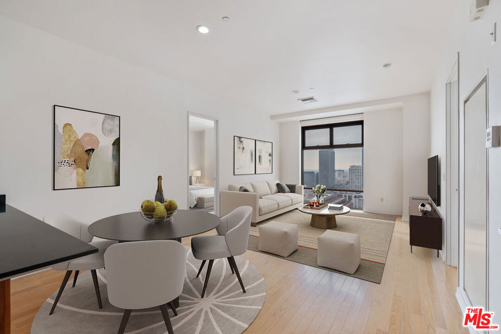 Breathtaking city light views of Downtown Los Angeles! Private entrance to an open floor plan delightful and relaxing DTLA loft, this home has 2 spacious bedrooms with the potential to be 2 bedrooms or office, 2 full baths with modernized details throughout. This charming, chic expansive open floor plan invites with an gorgeous European inspired gourmet kitchen with Italian cabinets, corian countertops and GE Monogram appliances. The great room welcomes with spectacular views featuring floor to ceiling windows while embracing a luxurious dining area to entertain and display an exquisite gallery. Hardwood floors embrace the loft allowing for comfort and relaxing ambiance while enjoying mesmerizing views. High ceilings expose the open feel to enjoy captivating evenings enjoying the amazing L.A. nightlife. Two individual parking spaces in a secure garage with 24-hour onsite security, new fitness center, movie theater and large entertainment room located off the main lobby. Located across the street from Whole Foods, CVS Pharmacy and Ralphs just two blocks away. Close shopping, restaurants and near 101, 10 and 110 freeways.