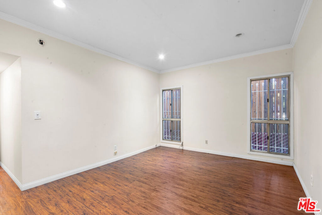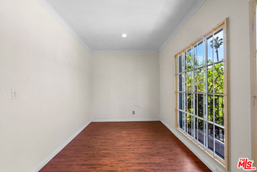 Fall in love with this bright, sun-drenched condominium in the lovely Windsor Village neighborhood, located in a charming boutique complex of only 9 units. This front-facing residence enjoys abundant natural light and peaceful treetop and walk-street views, creating an open, airy atmosphere throughout. The spacious living room features high ceilings, a cozy gas fireplace, and French doors that open to a private balcony, perfect for enjoying the tranquil surroundings. The extended balcony is one of the few in the building and provides a longer layout. Wood floors, recessed lighting, and an in-unit laundry add comfort and convenience. A formal entry leads to a generous living and dining area, complemented by ample closet space throughout the home.The versatile den offers flexible use as a home office, family room, or additional guest space. The spacious primary bedroom includes an en-suite bathroom and a walk-in closet.Additional highlights include a private garage with two tandem parking spaces, a valuable feature as not all units in the building include two parking spaces. In addition, the unit is not located on the ground level. Low HOA dues add to the appeal.Ideally located near Harold A. Henry Park, Larchmont Village, The Ebell Theatre, and the Marciano Art Museum, with convenient access to the Wilshire/Western Metro, major freeways, restaurants, shopping, and entertainment. Lovingly owned and maintained by the same owner for over 30 years, this is the first time the home has been offered on the market in decades. With just a few personal updates, this light-filled residence offers tremendous potential to make it truly your own.