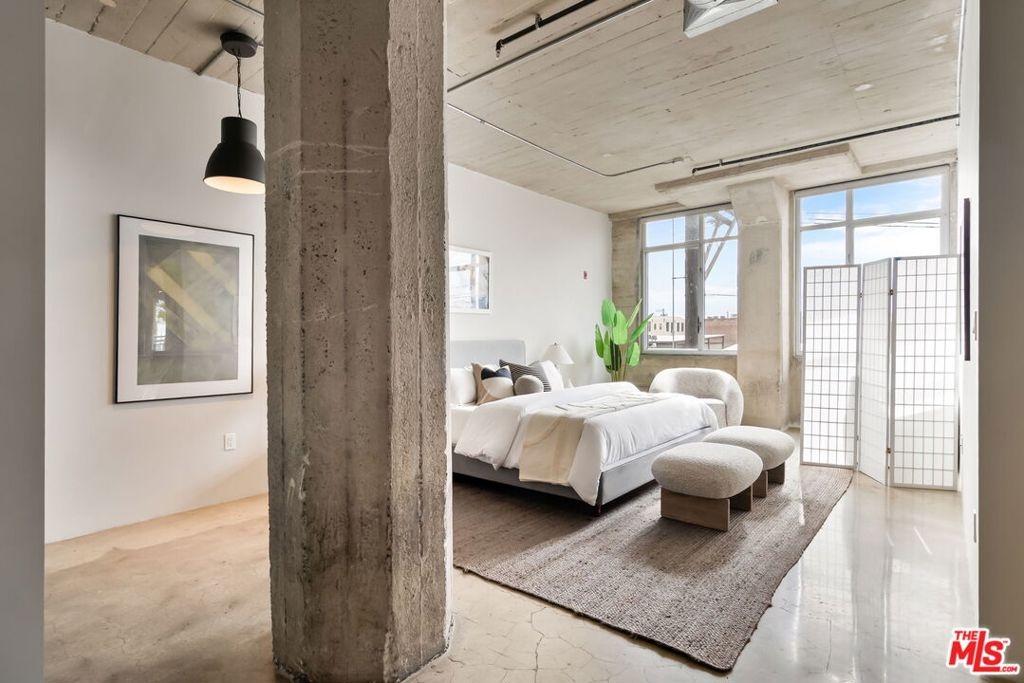 Stunning two bedroom, two bath sophisticated corner loft with office / den / recording studio and a large cooks kitchen. Views of the Downtown skyline and historic neighboring buildings, bathed in natural light, with exposed architectural details, polished concrete floors, dramatic over-sized pillars and floor to ceiling windows, reverse osmosis system, automatic black out shades, create a refined space that celebrates its industrial heritage. Located in one of the city's most desirable creative enclaves, the Downtown LA Arts District, this space perfectly blends modern comfort with timeless urban character. Blocks from the restaurants, coffee shops and boutiques in Little Tokyo and the Arts District, including Bavel, Bestia, Verve coffee, Girl and the Goat, as well as the 10 and 101 freeways, SCI-Arc and regional train stations, and TWO DEEDED PARKING SPACES.