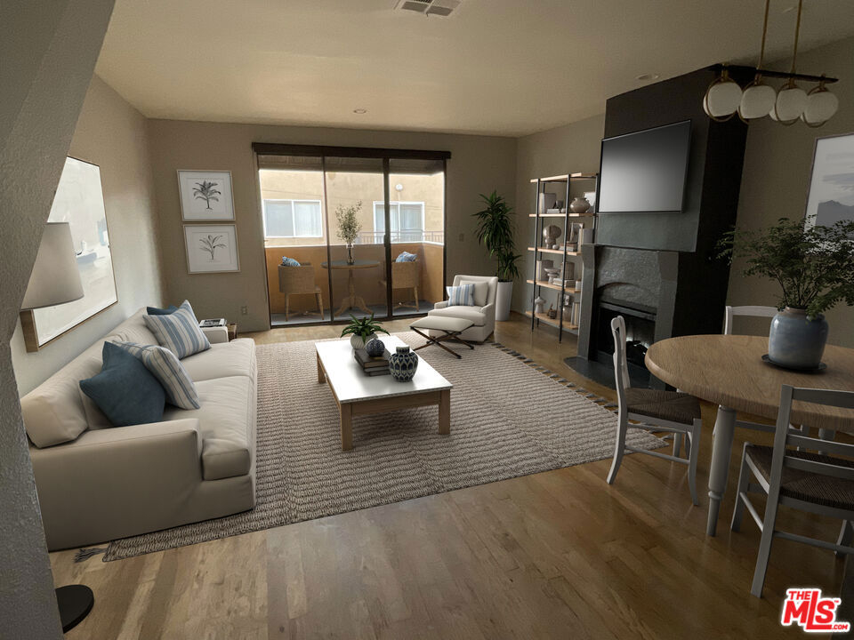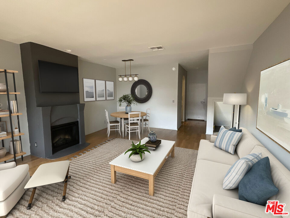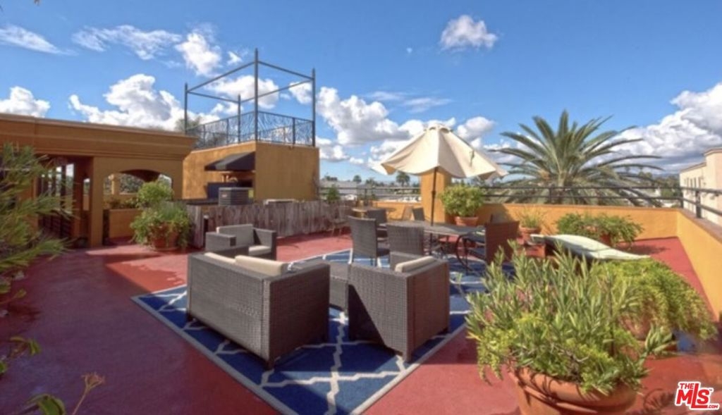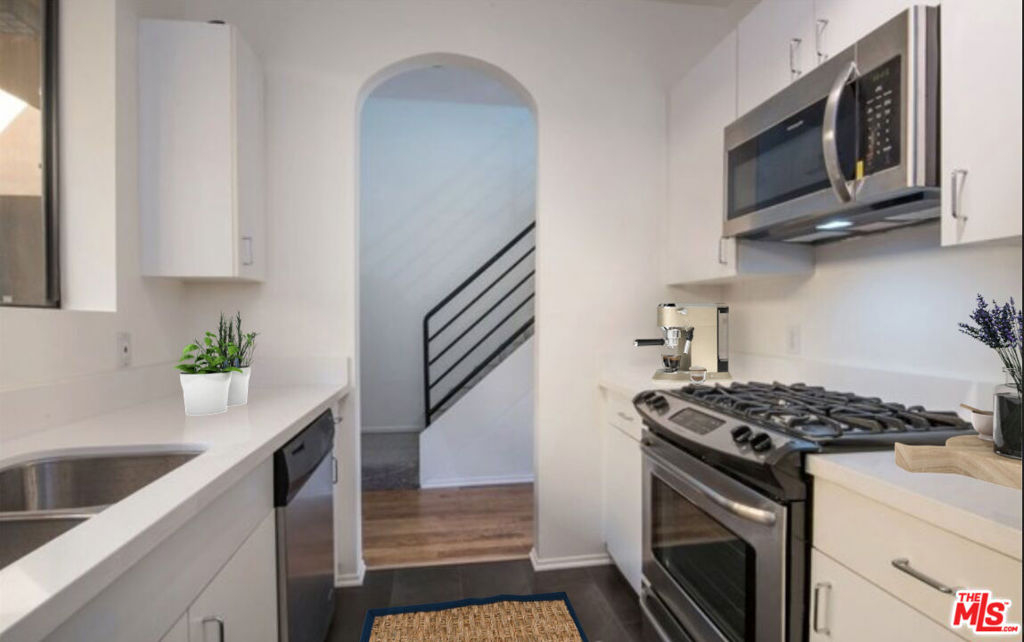 Highlights : Media district of Hollywood. Ultra-quiet rear location. Top floor, townhouse-style location. Stainless kitchen-brand-new-refrigerator. Fully-gated building; secured covered garage; 2 side by side parking spaces. In unit washer and dryer maybe added (preliminary HOA approval). Roof top patio.