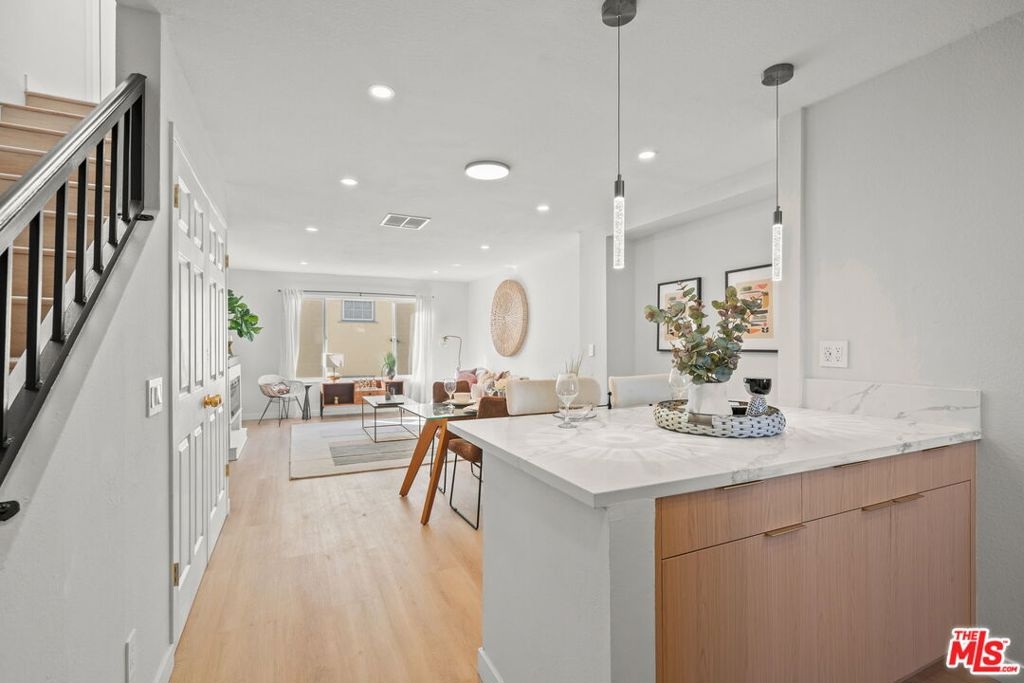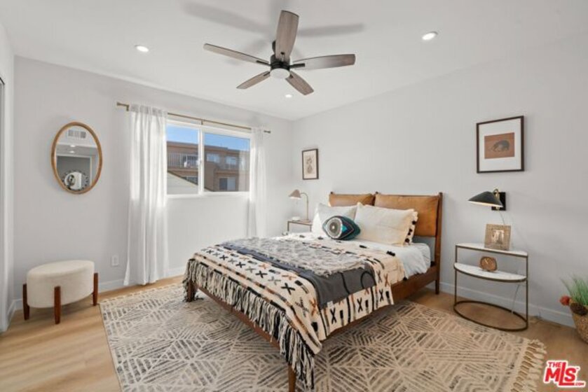 Welcome to this beautifully remodeled two-story condo, where modern luxury meets everyday comfort in the highly sought-after Pico-Robertson neighborhood. Thoughtfully updated throughout, this stunning 2-bedroom residence features high-end finishes, contemporary design, and an ideal layout for both comfortable living and stylish entertaining.The designer kitchen boasts custom cabinetry, sleek quartz countertops, and premium stainless-steel appliances, seamlessly flowing into bright open-concept living and dining areas. A chic decorative fireplace with electric insert adds warmth and sophistication.Upstairs, spacious light-filled bedrooms offer privacy and comfort, connected by a beautifully remodeled oversized Jack-and-Jill bathroom designed with both style and functionality in mind. Additional highlights include IN-UNIT WASHER & DRYER, CENTRAL A/C, upgraded bathrooms, and modern SMART TOILETS.Located in a secure, well-maintained 6-unit building with gated entry, low HOA dues, and two dedicated parking spaces. Just moments from top dining, shopping, and entertainment, with easy access to Beverly Hills, Century City, and the Westside.A rare turnkey opportunity in one of Los Angeles' most desirable neighborhoods.