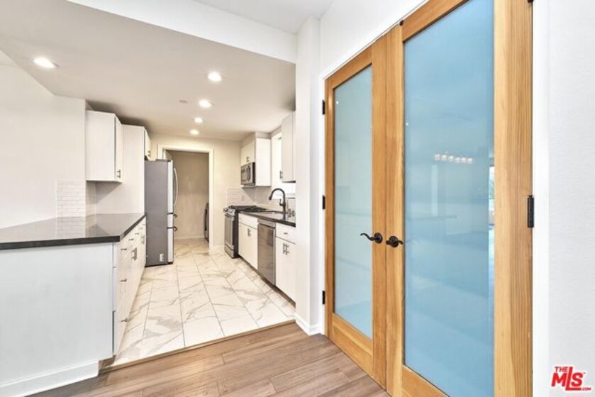 A fresh new look with a new price! Tucked away in one of Los Angeles' most timeless neighborhoods, this rare 3-bedroom, 2-bath residence in Hancock Park is one of the largest units in the building, offering 1,630 sq of elegantly upgraded living space, plus a private extra storage area for added convenience. Unlike most units in the complex that remain in their original condition, this home was fully remodeled from floor to ceiling just a few years ago, featuring new flooring, fresh paint, LED recessed lighting throughout, and modern chandeliers. The spacious master suite, thoughtfully separated from the guest bedrooms for privacy, features a walk-in closet and a luxurious bathroom with a large soaking tub, separate shower, dual sinks, and private patio access. The chef's kitchen boasts granite countertops, custom cabinetry, stainless steel appliances, and a large pantry-a rare feature in this building. The open floor plan is framed by floor-to-ceiling, double soundproof UV-coated windows that fill the home with natural light while offering breathtaking city light and fireworks views from every room. Step out onto the wraparound balconies, accessible from all rooms, and take in the vibrant skyline. Conveniently located at the epicenter of both the Metro Purple Line and Crenshaw/LAX stations, offering direct access to LAX, Santa Monica, and Downtown LA, this residence captures the essence of urban sophistication and modern convenience. This is more than a home; it's a statement of timeless design and contemporary living-right in the heart of Hancock Park.